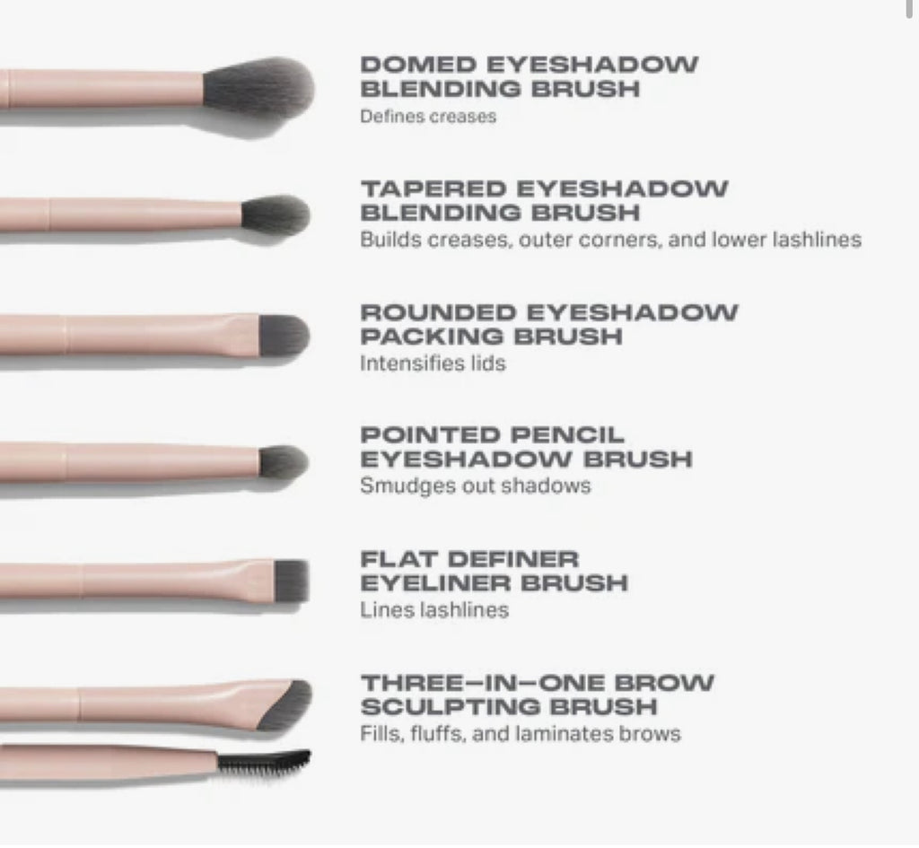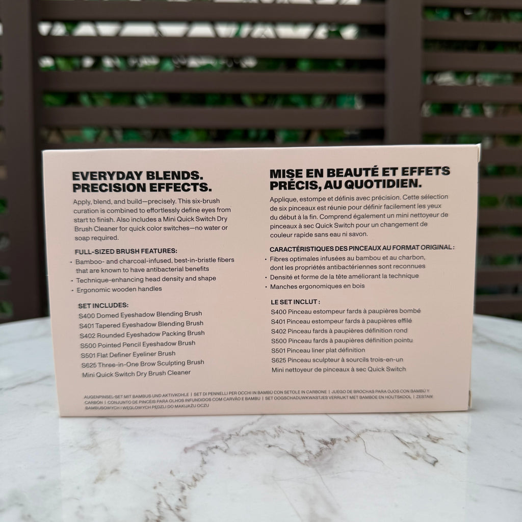 Apply, blend, and build with the Morphe Eye Shaping Essentials Bamboo- & Charcoal-Infused Makeup Brush Set. This six-brush curation is designed to offer maximum self-expression with minimum effort. Each eye makeup brush is crafted with bamboo- and charcoal-infused bristles that are known to have antibacterial benefits; technique-enhancing head densities and shapes; and ergonomic wooden handles. Also includes a Mini Quick Switch Dry Brush Cleaner for quick color switches—no water or soap required.